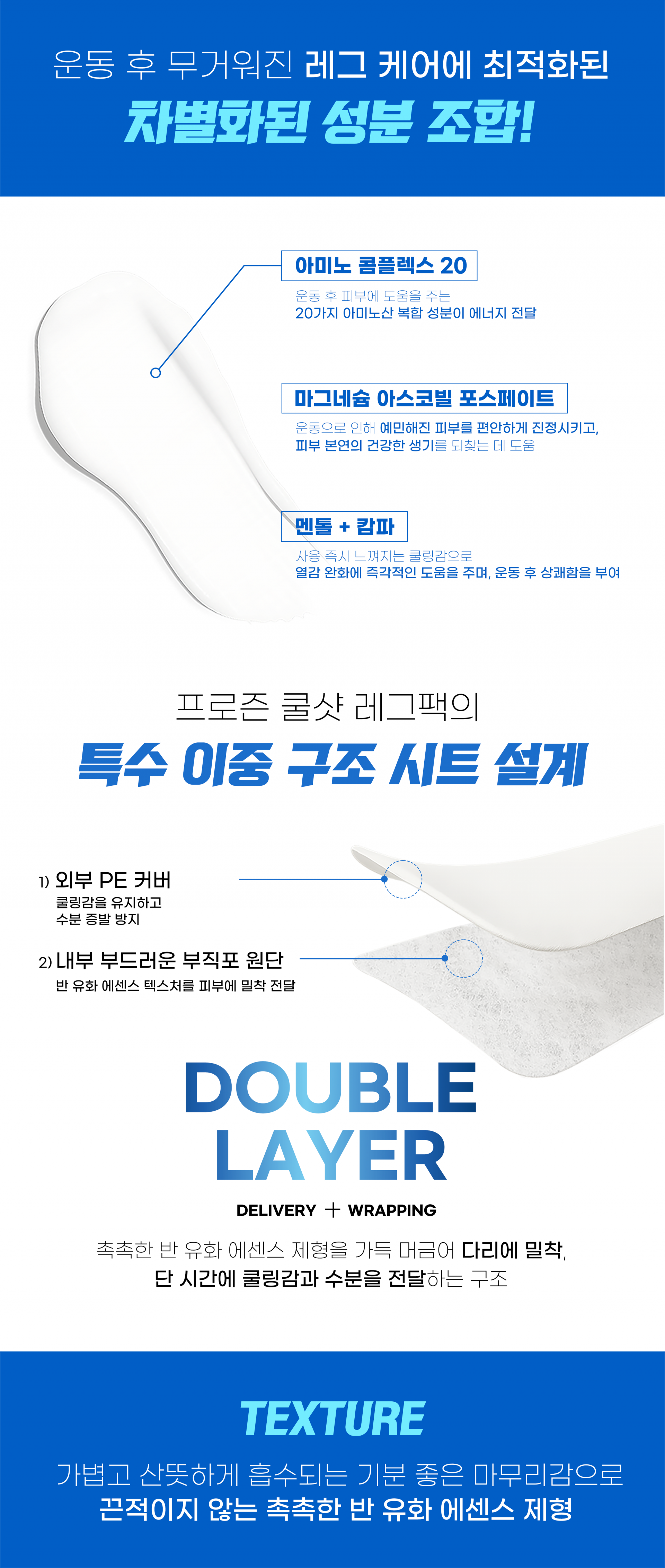 즉각적인 쿨링과 마그네슘·아미노산 성분이 운동 후 다리를 리프레시 해주는 스포츠 리커버리 전용 레그팩